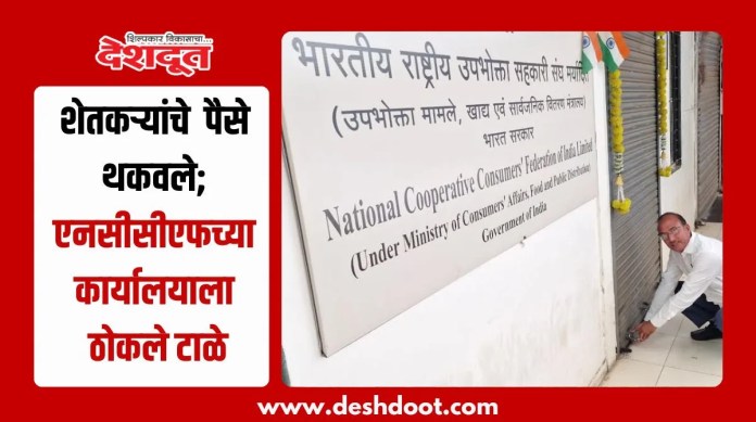राष्ट्रीय सहकारी ग्राहक महासंघ (एनसीसीएफ) कडून २०२२-२३ या वर्षात खरेदी करण्यात आलेल्या उन्हाळ कांद्याचे १० टक्के पैसे अद्याप शेतकऱ्यांना मिळालेले नाहीत. त्यामुळे जिल्ह्यातील सुमारे १५० शेतकऱ्यांचे सव्वा दोन कोटी रुपये थकीत आहेत. या प्रलंबित रकमेच्या विरोधात रयत क्रांती संघटनेने गुरुवारी (दि.१६) एनसीसीएफच्या नाशिक येथील कार्यालयात जोरदार आंदोलन करत अधिकार्यांना कार्यालयातच कोंडून ठेवले.
