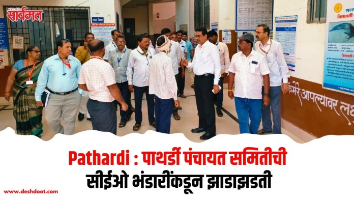 गुरुवारी सकाळी साडेनऊ वाजता मुख्य कार्यकारी अधिकारी भंडारी यांनी पाथर्डी पंचायत समिती कार्यालयाला भेट दिली. त्यांच्या अचानक भेटीमुळे कार्यालयातील अधिकारी व कर्मचार्यांची धावपळ उडाली. कार्यालय परिसरातील अस्वच्छता, अस्ताव्यस्त पडलेले साहित्य आणि उशिरा येणारे कर्मचारी याबाबत त्यांनी गटविकास अधिकारी संगीता पालवे यांच्याकडून सविस्तर माहिती घेत झाडाझडती घेतली.