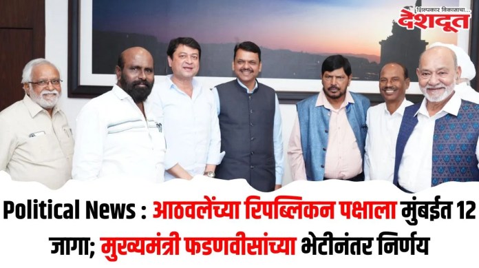 रिपब्लिकन पक्षाने फडणवीस यांच्याकडे पक्षाला हव्या असलेल्या १७ जागांची यादी सोपवली. यापैकी पक्षाला किमान १२ जागा सोडल्या जाणार आहेत. भाजपच्या कोट्यातून जागा सोडण्याबाबत फडणवीस यांनी भाजपचे मुंबई अध्यक्ष अमित साटम आणि प्रवीण दरेकर यांना निर्देश दिले आहेत. तसेच उपमुख्यमंत्री एकनाथ शिंदे (Eknath Shinde) यांच्याशी चर्चा करून आठवले गटाला सहा जागा सोडल्या जाणार आहेत. अशा १२ जागांवरून भाजप आणि शिवसेना शिंदे गटाचे उमेदवार माघार घेतील, अशी माहिती आठवले यांनी दिली.