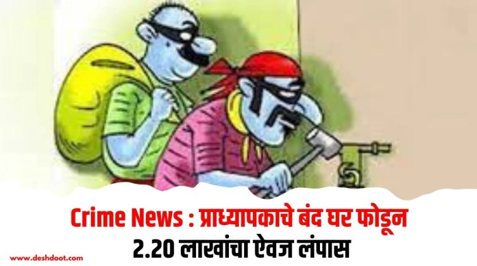 शहरातील कल्याण रस्त्यावरील शिवाजीनगर परिसरात एका प्राध्यापकाच्या बंद घराचे कुलूप तोडून चोरट्यांनी सुमारे 2 लाख 20 हजार रूपयांचा ऐवज लंपास केल्याची घटना समोर आली आहे. ही घटना 4 जुलै ते 6 जुलै दरम्यान घडली असून, अज्ञात चोरट्यांविरूध्द 7 जुलै रोजी तोफखाना पोलीस ठाण्यात गुन्हा दाखल करण्यात आला आहे.
