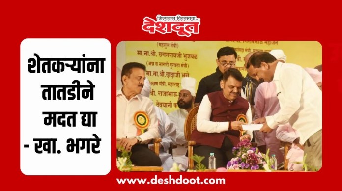 नाशिक जिल्ह्यातील सततचा पाऊस आणि अतिवृष्टीमुळे झालेल्या नुकसानग्रस्त शेतकर्यांना तातडीने मदत द्यावी, अशी मागणी खासदार भास्कर भगरे यांनी मुख्यमंत्री देवेंद्र फडणवीस यांच्याकडे केली आहे.