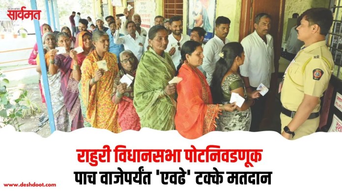 दुपारी 1 वाजेपर्यंत 3 लाख 33 हजार 545 मतदारांपैकी 98 हजार 740 मतदारांनी (29.60 टक्के) मतदानाचा हक्क बजावला. दुपारच्या सत्रानंतर पाच वाजेपर्यंत 50.74 टक्के मतदान झाले आहे. अनेक मतदान केंद्रांवर (Voting Center) मतदारांच्या रांगा लागल्या होत्या.