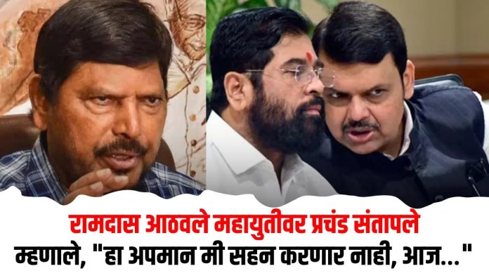 मुंबई महानगरपालिका निवडणुकीच्या (BMC Election 2026) रणधुमाळीत महायुतीमध्ये मोठे राजकीय नाट्य पाहायला मिळत आहे. जागावाटपात भारतीय जनता पक्ष आणि शिवसेनेच्या (शिंदे गट) युतीने रिपब्लिकन पार्टी ऑफ इंडियाला (रिपाई-आठवले गट) एकही जागा न दिल्याने केंद्रीय मंत्री रामदास आठवले यांनी अत्यंत आक्रमक भूमिका घेतली आहे. “महायुतीने आमचा विश्वासघात केला असून हा अपमान आम्ही कदापि सहन करणार नाही,” असा इशारा देत आठवलेंनी युतीमधील संघर्षाला तोंड फोडले आहे.