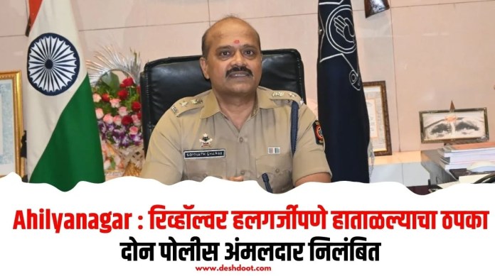 या दोन्ही पोलीस अंमलदारांवर कर्तव्याचे ठिकाण सोडून बोल्हेगाव परिसरात जाणे तसेच जवळील रिव्हॉल्वर चुकीच्या व हलगर्जी पध्दतीने हाताळल्याचा ठपका ठेवण्यात आला आहे. महापालिका निवडणुकीच्या पार्श्वभूमीवर शहरात तणावपूर्ण वातावरण असताना, अशा प्रकारे शस्त्राचा गैरवापर किंवा निष्काळजीपणा केल्याचा आरोप गंभीर मानण्यात आला आहे. दरम्यान, शिवसेना (ठाकरे गट) पक्षाच्या उपनेत्या सुषमा अंधारे यांनी समाजमाध्यम ‘एक्स’वर एक व्हिडीओ पोस्ट केला होता. या व्हिडीओमध्ये एका पोलिसाच्या हातामध्ये रिव्हॉल्वर स्पष्टपणे दिसत असून, तो महापालिका निवडणुकीच्या उमेदवारांच्या घरासमोर असल्याचा आरोप करण्यात आला होता.