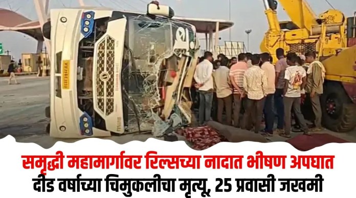 समृद्धी महामार्गावर चालकाच्या बेजबाबदारपणाचा एक संतापजनक प्रकार समोर आला आहे. चालत्या बसमध्ये रिल्स बनवण्याच्या नादात चालकाचे नियंत्रण सुटल्याने खाजगी बस उलटून भीषण अपघात झाला. मेहकर टोलनाक्याजवळ झालेल्या या दुर्घटनेत एका दीड वर्षाच्या चिमुकलीला आपला जीव गमवावा लागला असून, २० ते २५ प्रवासी गंभीर जखमी झाले आहेत. चालकाच्या या जीवघेण्या करामतीमुळे प्रवाशांमधून तीव्र संताप व्यक्त केला जात आहे.