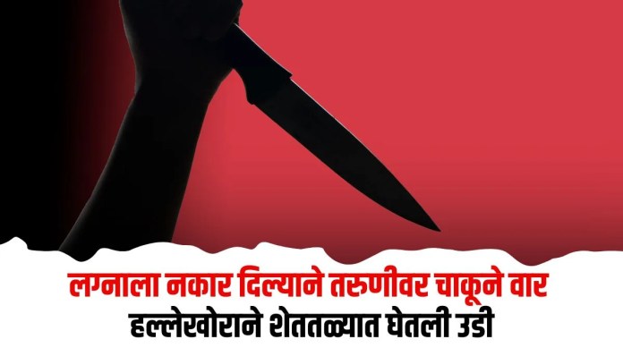 लग्नाला नकार दिला म्हणून तरुणाने तरुणीच्या अंगावर चाकूने वार करून तिला गंभीर जखमी केले. यानंतर तरुणानेही आपल्याच गळ्यावर चाकूने वार करत शेततळ्यात उडी घेतली. ही धक्कादायक घटना संगमनेर तालुक्याच्या पठारभागावरील रणखांब येथे सोमवारी (दि. १६) सकाळी साडेअकरा वाजेच्या सुमारास घडली.