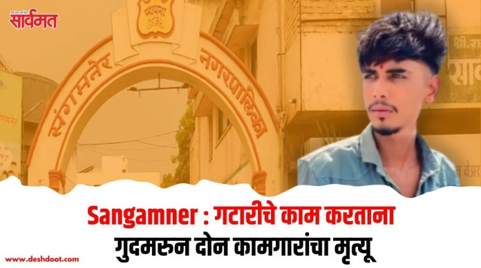अतुल रतन पवार (वय 19) व रियाज जावेद पिंजारी (वय 22) असे या दुर्घटनेत मृत्यू झालेल्या मजुरांची नावे आहेत. संगमनेर नगरपालिकेने सांडपाणी व्यवस्थापन प्रकल्पांतर्गत शहरात भूमिगत गटारांचे जाळे टाकण्याचे काम सुरू केले आहे. गुरुवारी कोल्हेवाडी रस्त्यावरील कामाच्यावेळी एका कामगाराला श्वास घेण्यास त्रास होवू लागला. त्याला वाचवण्यासाठी धावलेल्या काही कामगारांचा आणि नागरिकांचाही गटारात श्वास कोंडला. यामुळे एकच गोंधळ उडाला.