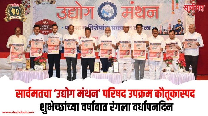 गेली पाच दशके वाचकांना केंद्रस्थानी ठेवून आपला दैदीप्यमान वारसा यशस्वीपणे पुढे घेऊन जाणार्या आणि जिल्ह्याचा आरसा असलेल्या दैनिक सार्वमतने सुवर्ण महोत्सवी वर्षानिमित्त आयोजित केलेला ‘उद्योग मंथन’ परिषद हा उपक्रम कौतूकास्पद असल्याचे गौरवोद्गार उपस्थित मान्यवरांनी काढले. या ‘उद्योग मंथन’ परिषदेमुळे अहिल्यानगर जिल्ह्याच्या औद्योगिक विकासासाठी नव्या विचारांची देवाणघेवाण झाली. तर जिल्ह्याच्या सामाजिक आणि वैचारिक भविष्यासाठी नव्या दिशेचे मंथन घडून आले. या सोहळ्यात सार्वमतच्या सुवर्ण महोत्सवी विशेषांकाचे प्रकाशन मान्यवरांच्या हस्ते दिमाखात पार पडले.