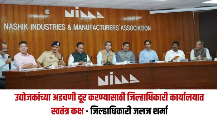 जिल्हा उद्योग मित्र समितीची सभा जिल्हाधिकारी शर्मा यांच्या अध्यक्षतेखाली निमा हाऊस येथे झाली, यावेळी ते बोलत होते. जिल्हा परिषदेचे मुख्य कार्यकारी अधिकारी ओमकार पवार, जिल्हा पोलीस अधीक्षक बाळासाहेब पाटील, एमआयडीसीचे प्रादेशिक अधिकारी दीपक पाटील, महावितरणचे उपमुख्य महाव्यवस्थापक सुंदर लटपटे, निमाचे अध्यक्ष आशिष नहार, जिल्हा उद्योग केंद्राचे चकोर आदींची यावेळी व्यासपीठावर उपस्थिती होती.