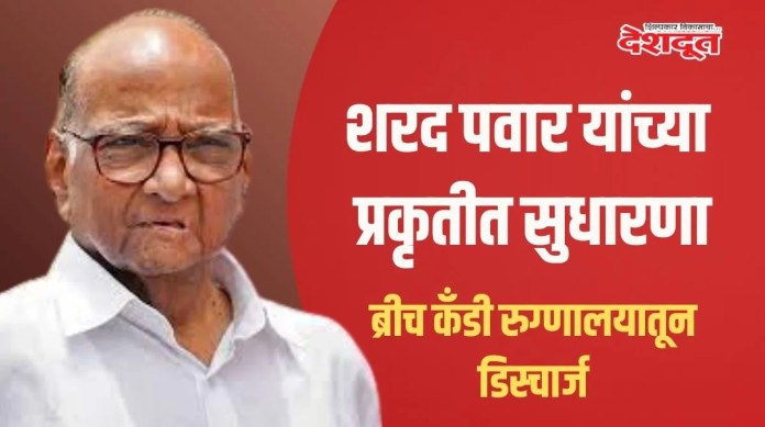 प्रकृती अस्वास्थ्यामुळे येथील ब्रीच कँडी रुग्णालयात उपचारासाठी दाखल झालेले राष्ट्रवादी काँग्रेस शरदचंद्र पवार पक्षाचे ज्येष्ठ नेते शरद पवार यांना गुरुवारी सकाळी घरी सोडण्यात आले. पवार यांना मंगळवारी रुग्णालयात दाखल करण्यात आले होते, तिथे त्यांच्यावर विविध चाचण्या करण्यात आल्या. त्यानंतर दोन दिवस रुग्णालयात ठेवल्यानंतर त्यांना आज डॉक्टरांच्या सल्ल्याने घरी सोडण्यात आले.