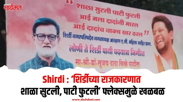 शिर्डी नगरपरिषदेच्या नगराध्यक्षपदाचे आरक्षण अनुसूचित जाती महिला वर्गासाठी जाहीर झाल्यानंतर, शिर्डीचे माजी नगराध्यक्ष कैलासबापू कोते यांनी लावलेल्या एका फ्लेक्स बोर्डने शहराच्या राजकारणात मोठी खळबळ उडवून दिली आहे. या फ्लेक्सवर लिहिलेला मजकूर थेट डॉ. सुजय विखे पाटील यांच्या एका विधानाशी जोडला जात आहे, ज्यामुळे अनेक राजकीय तर्क-वितर्क लावले जात आहेत.