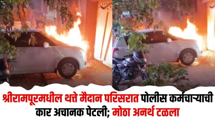 श्रीरामपूर शहरातील थत्ते मैदान परिसरात उभ्या असलेल्या पोलीस कर्मचाऱ्याच्या स्विप्ट कारने अचानक पेट घेतल्याने एकच गोंधळ उडाला. सुदैवाने या घटनेत कोणतीही जीवितहानी झाली नसली तरी संबंधित वाहनाचे नुकसान झाले आहे. मात्र वेळीच आग विझविण्यात आल्याने मोठा अनर्थ टळला.