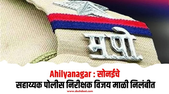 नेवासा तालुक्यातील सोनई पोलीस ठाणे हद्दीत दोनवेळा गोळीबारासह गंभीर गुन्हे वाढल्याने सहायक पोलीस निरीक्षक विजय माळी यांचे निलंबन करण्यात आले आहे. याबाबत पोलीस अधीक्षक सोमनाथ घार्गे यांनी प्रसिद्धीस दिलेल्या पत्रकात म्हटले की, सहायक पोलीस निरीक्षक विजय माळी यांनी सोनई पोलीस ठाण्यात नेमणुकीस असताना त्यांना मागील सहा महिन्याच्या कालावधीत पोलीस ठाणे हद्दीतील दाखल झालेल्या गंभीर स्वरुपाच्या गुन्ह्यांमध्ये प्रभावी प्रतिबंधक कार्यवाही करण्याबाबत वेळोवेळी स्पष्ट सूचना देवूनही त्या सूचनांचे पालन केले नाही.