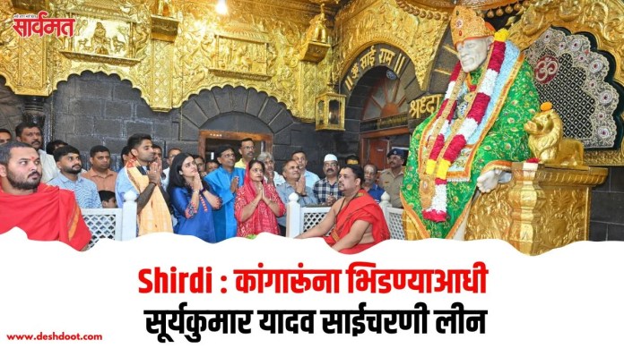 साईबाबा दर्शनानंतर माध्यमांशी बोलताना सूर्यकुमार (Suryakumar Yadav) यांनी सांगितले, आज सहपरिवार साईबाबांच्या दर्शनासाठी आलो होतो. आरतीला उपस्थित राहता आल्याचा मला खूप आनंद झाला. साईबाबांचे आशीर्वाद घेतल्याने मनाला समाधान लाभले. येणार्या सामन्यांसाठी सर्व काही चांगले चालले आहे आणि सर्व उत्तम होईल, याची खात्री आहे. तसेच त्यांनी देशवासीयांना दिवाळीच्या शुभेच्छाही दिल्या.