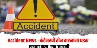 Accident News : कंटेनरची तीन वाहनांना धडक; एकाचा मृत्यू, एक जखमी