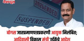 बोगस जात प्रमाणपत्र प्रकरणी आयुक्त निलंबित; आदिवासी विकास मंत्री उईकेंचे आदेश