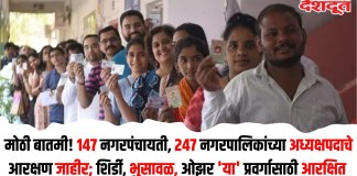 मोठी बातमी! १४७ नगरपंचायती, २४७ नगरपालिकांच्या अध्यक्षपदाचे आरक्षण जाहीर; शिर्डी, भुसावळ,...