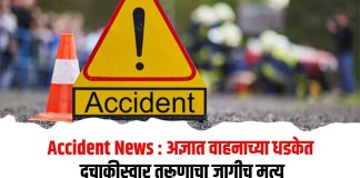 Accident News : अज्ञात वाहनाच्या धडकेत दुचाकीस्वार तरूणाचा जागीच मृत्यू