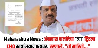 Maharashtra News : अंबादास दानवेंच्या ‘त्या’ ट्विटला CMO कार्यालयाचे प्रत्युत्तर; म्हणाले,...