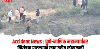 Accident News : पुणे-नाशिक महामार्गावर नियंत्रण सुटल्याने कार दरीत कोसळली