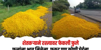 Parner News : शेतकऱ्याने रस्त्यावर फेकली फुले; फुलांना भाव मिळेना, फुकट...