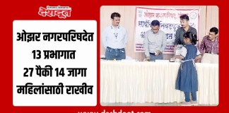 ओझर नगरपरिषदेत १३ प्रभागात २७ पैकी १४ जागा महिलांसाठी राखीव