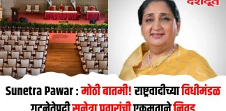 Sunetra Pawar : मोठी बातमी! राष्ट्रवादीच्या विधीमंडळ गटनेतेपदी सुनेत्रा पवारांची एकमताने...