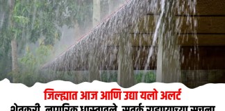 Rain Alert : जिल्ह्यात आज आणि उद्या यलो अलर्ट; शेतकरी, नागरिक...