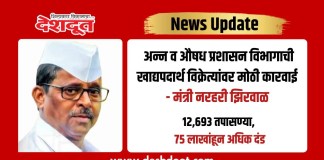 अन्न व औषध प्रशासन विभागाची खाद्यपदार्थ विक्रेत्यांवर मोठी कारवाई – मंत्री...