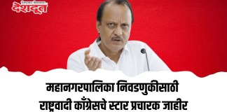 महानगरपालिका निवडणुकीसाठी राष्ट्रवादी काँग्रेसचे स्टार प्रचारक जाहीर