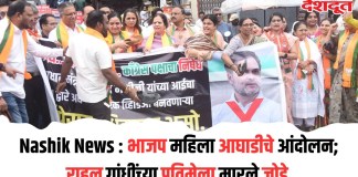 Nashik News : भाजप महिला आघाडीचे आंदोलन; राहुल गांधींच्या प्रतिमेला मारले...