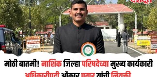 मोठी बातमी! नाशिक जिल्हा परिषदेच्या मुख्य कार्यकारी अधिकारीपदी ओंकार पवार यांची...
