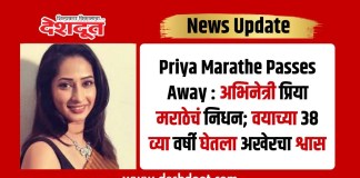 Priya Marathe Passes Away : अभिनेत्री प्रिया मराठेचं निधन; वयाच्या ३८...