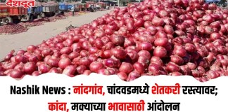Nashik News : नांदगांव, चांदवडमध्ये शेतकरी रस्त्यावर; कांदा, मक्याच्या भावासाठी आंदोलन