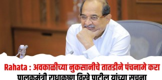 Rahata : अवकाळीच्या नुकसानीचे तातडीने पंचनामे करा