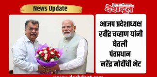 भाजप प्रदेशाध्यक्ष रवींद्र चव्हाण यांनी घेतली पंतप्रधान नरेंद्र मोदींची भेट