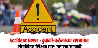 Accident News : दुचाकी-कंटेनरच्या अपघातात सेवानिवृत्त शिक्षक ठार; तर एक जखमी
