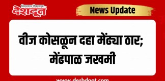 वीज कोसळून दहा मेंढ्या ठार; मेंढपाळ जखमी