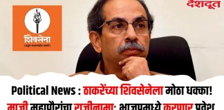 Political News : ठाकरेंच्या शिवसेनेला मोठा धक्का! माजी महापौरांचा राजीनामा; भाजपमध्ये करणार...