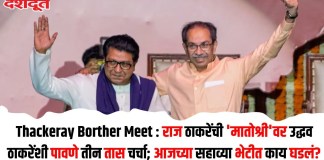 Thackeray Borther Meet : राज ठाकरेंची ‘मातोश्री’वर उद्धव ठाकरेंशी पावणे तीन...