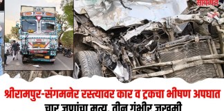 Accident News : श्रीरामपुर-संगमनेर रस्त्यावर कार व ट्रकचा भीषण अपघात