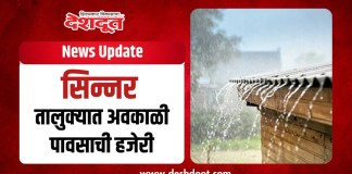 सिन्नर तालुक्यात अवकाळी पावसाची हजेरी