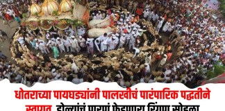धोतराच्या पायघड्यांनी पालखीचं पारंपारिक पद्धतीने स्वागत, डोळ्यांचं पारणं फेडणारा रिंगण सोहळा