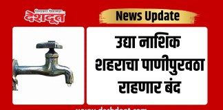 उद्या नाशिक शहराचा पाणीपुरवठा राहणार बंद