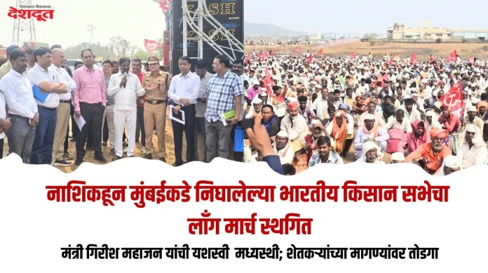 वन हक्क कायद्याची प्रभावी अंमलबजावणी, पेसा अंतर्गत भरती, पाण्याचा स्थानिक व कोरडवाहू भागासाठी वापर, तसेच रोजगार व मूलभूत सुविधा या प्रमुख मागण्यांसाठी नाशिक जिल्ह्यातील अखिल भारतीय किसान सभेच्या (लाल बावटा) वतीने काढण्यात आलेला लाँग मार्च अखेर माघारी घेण्यात आला.मुख्यमंत्री देवेंद्र फडणवीस यांच्या नेतृत्वाखाली आणि जलसंपदा मंत्री गिरीश महाजन यांच्या पुढाकारातून झालेल्या चर्चेनंतर या आंदोलनावर तोडगा काढण्यात आला.