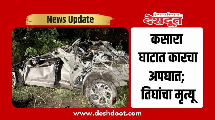 आज मुंबई नाशिक महामार्गावरील कसारा घाटात कारच्या झालेल्या भीषण अपघातात तीन जणांचा मृत्यू झाला, या अपघातात दोघांचा जागीच मृत्यू झाला, तर एकाचा रुग्णालयात उपचारासाठी घेऊन जात असताना मृत्यू झाला. रियाज हासियत अली, आसादुला अली, अफजल बैतुलहा सर्व राहणार उत्तर प्रदेश अशी मृतांची नावेआहेत.