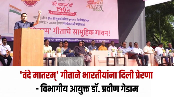 बंकिमचंद्र चटोपाध्याय लिखित ‘वंदे मातरम्’ या गीताने भारतीय स्वातंत्र्य चळवळीला स्फुलिंग मिळाले. या गीताने भारतीय एकत्र झाले. त्यांना प्रेरणा मिळाल्याने भारतीय नागरिक स्वातंत्र्य लढ्यात सहभागी झाले, असे प्रतिपादन विभागीय आयुक्त डॉ. प्रवीण गेडाम यांनी केले.