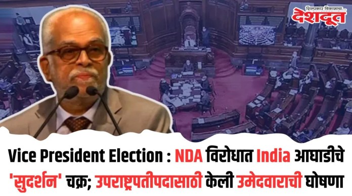 एनडीएकडून (NDA) उपराष्ट्रपतीपदाच्या निवडणुकीसाठी (Vice President Election) महाराष्ट्राचे राज्यपाल सी.पी राधाकृष्णन (CP Radhakrishnan) यांना उमेदवारी जाहीर करण्यात आली होती. त्यामुळे विरोधकांच्या इंडिया आघाडीकडून (India Aaghadi) कुणाला उमेदवारी दिली जाणार, याची राजकीय वर्तुळात चर्चा रंगली होती. त्यानंतर आता इंडिया आघाडीने उपराष्ट्रपतीपदासाठी उमेदवाराची (Candidate) घोषणा केली आहे.