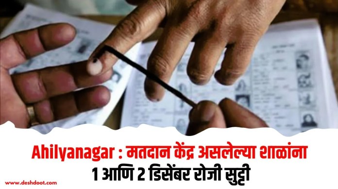 जिल्ह्यातील संगमनेर, कोपरगाव, शिर्डी, राहाता, राहुरी, देवळाली प्रवरा, श्रीरामपूर, पाथर्डी, शेवगाव, जामखेड व श्रीगोंदा नगरपरिषद तसेच नेवासा नगरपंचायत या ठिकाणी मतदान प्रक्रिया पार पडणार आहे. मतदानाच्या पूर्वतयारीचा एक भाग म्हणून मतदान अधिकारी व कर्मचारी 1 डिसेंबर रोजी सकाळपासूनच नियुक्त शाळांमध्ये दाखल होणार असल्याने त्या दिवशी शाळा उपलब्ध ठेवणे गरजेचे आहे. मतदानाच्या दिवशी, म्हणजे 2 डिसेंबर रोजी, शाळांमध्ये मोठ्या प्रमाणावर मतदारांची व कर्मचारी-अधिकार्यांची ये-जा होणार असल्याने नियमित शैक्षणिक कार्य सुरळीत पार पडू शकत नाही.