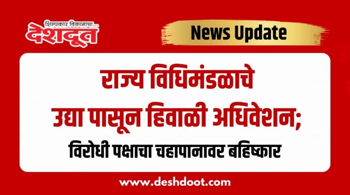 राज्य विधिमंडळाचे हिवाळी अधिवेशन सोमवारपासून सुरू होत आहे. प्रथेनुसार सत्ताधारी पक्षाने विरोधकांना मुख्यमंत्री निवास ‘रामगिरी’ येथे चहापानासाठी निमंत्रण दिले होते; मात्र दोन्ही सभागृहात विरोधी पक्षनेते पद रिक्त ठेवल्याने आणि त्यामुळे संविधानाचा अवमान झाल्याचा आरोप करत विरोधकांनी या कार्यक्रमावर बहिष्कार टाकला.